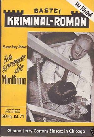 Ich sprengte die Mordfirma kostete 50 Pfennige und erschien als Band 71 im Bastei Kriminal-Roman und war damit der zweite Jerry Cotton Roman. Der Autor bleibt im Zauberspiegel unbenannt, obwohl der Roman durchaus nach dem Erfinder Delfried Kaufmann klingt und das wird im Kommentar auch bestätigt.