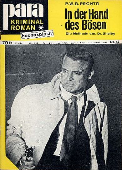 1964 erschien als Para Kriminal Roman 64 In der Hand des Bösen. Über den Autor P.W.D. Pronto konnte ich nichts finden. Zeitgleich erschien mit anderem Titelbild die 2.Auflage.